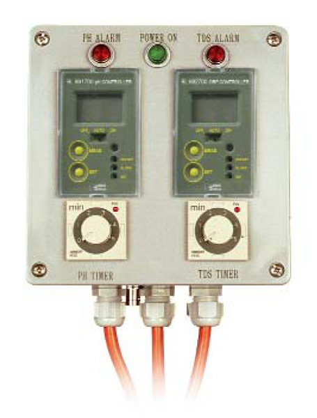 pH, ORP, conductivity, timers, level sensors, temperature, variable speed drives and PLC.